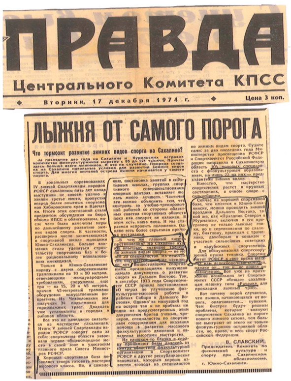 В то время напечататься в «Правде» – уже событие! Но самое главное, что реакция на вопросы, которые были озвучены в этой газете, как правило, была мгновенной со стороны всех организаций и персоналий в СССР. И конечно, одновременно это определяло внимание и поднимало авторитет Сахалинской области.