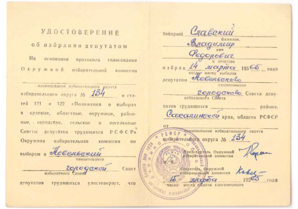Через год меня избрали вторым, а затем и первым секретарем Невельского горкома комсомола, а также членом бюро Невельского горкома партии и депутатом городского совета.