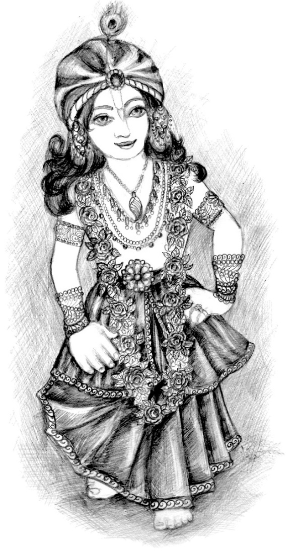 Несмотря на то что нам сказали, что нас там только накормят, а переночевать не получится, все же это было очень хорошей новостью. Нас встретила пожилая матаджи с тремя рядами кантхималов на шее: «Харе Кришна, дорогие преданные! Проходите, сейчас прасад будет». И эта картина, и упоминание прасада ввело всех в блаженство. Оказалось, что она единственная инициированная преданная в этом городе. Ученица Индрадьюмны Свами Махараджа. Она сказала, что нужно подождать, Господь вкушает. Мысли сразу закружились: «Значит, в этом городе есть Господь! Значит, это Он здесь все закружил! Ведь Он здесь самый главный! И это Он нас к Себе пригласил». Я сразу решил пойти в Его апартаменты, чтобы выразить почтение и поклониться Ему. Без каких-либо стандартов, против правил, сразу решил пойти на даршан. «Господь поймет меня, ведь я так по Нему соскучился», – подумал я и зашагал в сторону комнаты, где жил Господь. Когда мы зашли в алтарную, я упал как палка, увидев Его необычную форму! Такой формы Кришны только две на планете: одно Божество установлено в Оттаве, Канада (Его Прабхупада установил), а другое в Мегионе. Его зовут Кришна-Босс! По материальным меркам, он где-то около метра ростом. Синий. Он стоит, уперев две руки в бока, высоко подняв подбородок, мол, «ну, кто может сравниться с Моим могуществом, великолепием, богатством, славой, знанием и отречением?!». Мы как парализованные смотрели на Него! Кто бы мог тогда подумать, что мы где-то в глубинке, на Севере попадем к Нему домой и получим такой даршан!