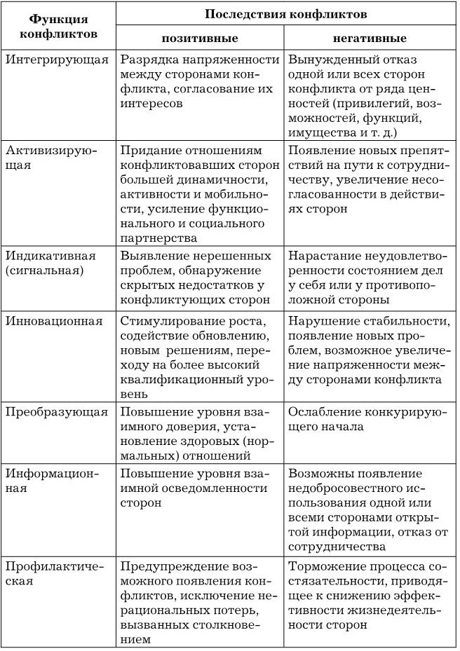 Функции конфликтов и их последствия
