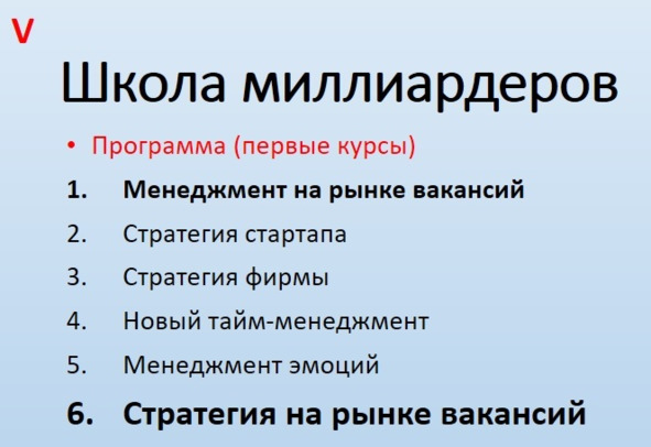 Вот название курсов для действующих миллиардеров и желающих ими стать: