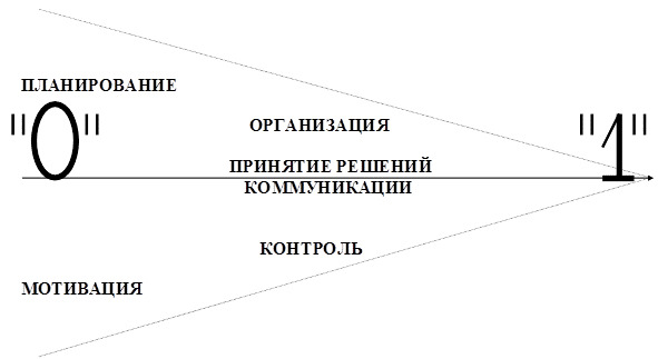 Во-первых, формулируются цели, определяется, когда они должны быть достигнуты – это функция ПЛАНИРОВАНИЯ. ( Например, я планирую, каков должен быть объем этой книги, и к какому сроку я должен ее закончить.)