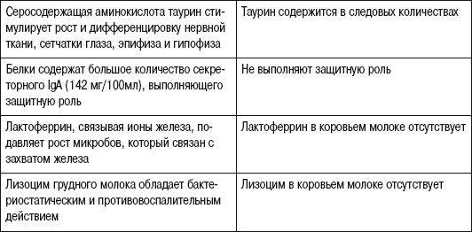 Таурин – доминирующая свободная аминокислота в клетках сетчатки глаза, нервной ткани, надпочечников, эпифиза и гипофиза. Стимулирует рост и дифференцировку этих органов, является мембраностабилизатором и антиоксидантом. Неметаболизируемые белки зрелого молока обеспечивают иммунную защиту ребенка.