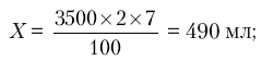 При 7-разовом кормлении (73,5 × 7) суточный объем будет составлять 514 мл.