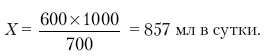 Учитывая среднее количество белка, находящегося в 1 л грудного (12 г/л) молока; необходимый суточный объем составит: