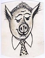 Вчера вечером его, вроде бы, видели в баре “У Толстого Борова”, который под мостом. Говорят, что он собирался ехать к Розовым свинкам, да видно не успел. Объелся отрубей. Если хрюкеры его найдут, то съезд состоится.