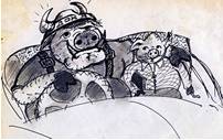 Из-за угла соседнего дома на большой скорости с плакатами и развернутыми знаменами выскочила огромная толпа свиней на мотоциклах, мопедах, мотороллерах и самокатах и с улюлюканьем грохотом и шумом промчалась мимо. Последним, изнемогая, бежал маленький и толстый поросенок на роликах. Хрюкеры поехали на свой традиционный сезонный съезд.
