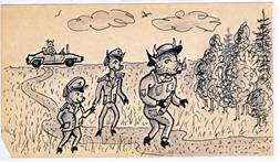 Этот факт показался ему странным. Обычно он знал всех шпионов, чем они занимаются и где они находятся. Но этих он видел впервые. Немного подумав, он решил не отвлекаться от предстоящего серьезного дела и продолжить свой путь. Перейдя улицу и повернув за угол, Хрюшон быстро направился к автобусной остановке. Но не успел он пройти и десяток шагов, как возле него со страшным визгом затормозила громадная легковая машина-вездеход и знакомый голос радостно заорал: