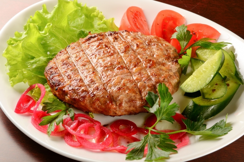 При подаче бифштексы оформите зеленью, свежими овощами. В качестве гарнира подойдет картофельное пюре, отварной рис.