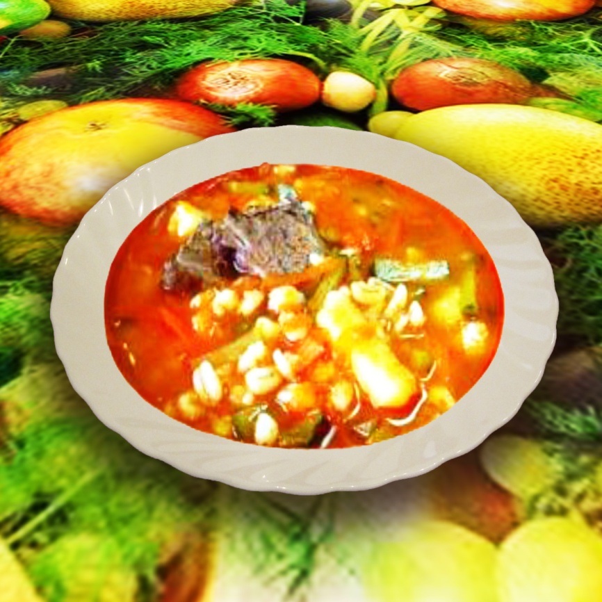 В кипящий бульон заложите подготовленную крупу перловую, доведите её до полуготовности и заложите картофель. Доведите картофель до полуготовности и заложите пассерованные овощи. Варите 10–15 мин и за 5 мин до окончания добавьте соль и специи по вкусу.