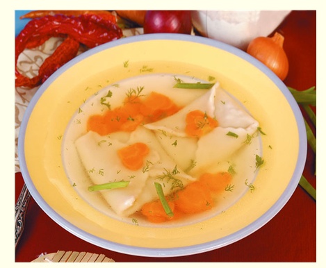 Конвертики из теста с куриным бульоном