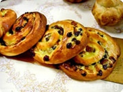 мука пшеничная 1 сорта – 100 г, дрожжи – 1 г, молоко – 50 г, яйцо – 0,5 шт., масло коровье – 5 г, изюм – 5 г.