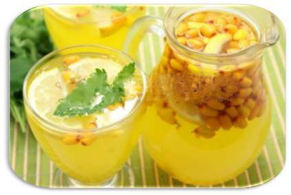 ягоды облепихи (свежие или замороженные) – 30 г, лимон – 5 г, сахар – 20 г, мята – 2 г, вода – 250 г.