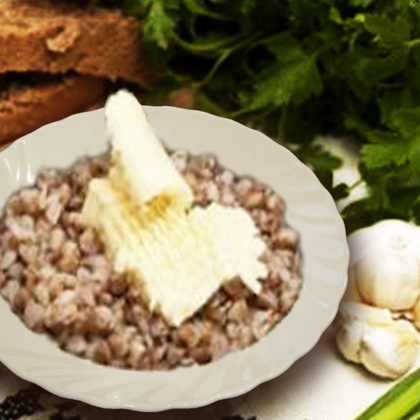 крупа гречневая – 80 г, масло коровье – 10 г, соль – 2 г, вода – 130 г.