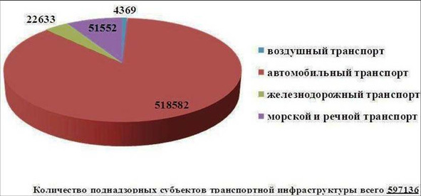 Количество поднадзорных субъектов транспортной инфраструктуры и транспортных средств представлены на Рис. 1.