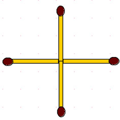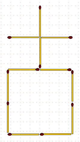 2-128. Из 4 спичек сложен крест, но не так как в задаче 2-6. Получить маленький квадратик в центре не получится. Хотя требование аналогичное: переместить одну спичку так, чтобы получился квадрат.