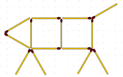2-96. Поросёнок. Передвинув как можно меньше спичек, заставьте поросёнка повернуться в противоположную сторону.