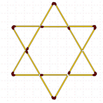 2-98. Звезда-2. Переложите 6 спичек так, чтобы получилось 6 равных симметрично расположенных четырёхугольников.