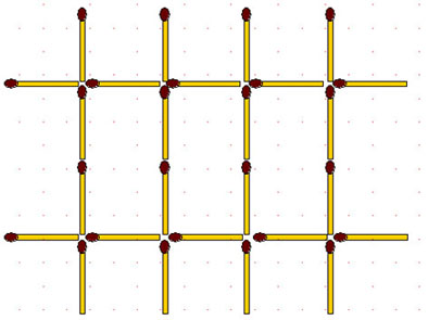 2) у каждого из маленьких квадратов ровно 2 стороны должны быть закрыты спичками;