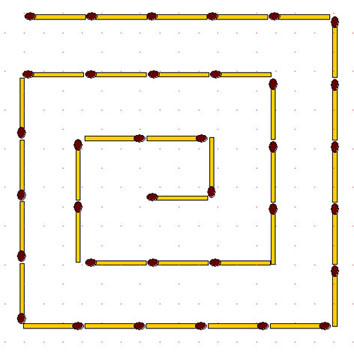 2-101. Спираль. Спираль из 35 спичек закручена против часовой стрелки. Переложите 4 спички так, чтобы получилась такая же спираль, но закрученная по часовой стрелке.