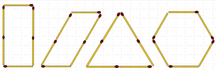 Теперь еще раз пройдемся по фигурам, увеличивая постепенно количество используемых спичек.