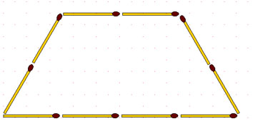 2-103. На рисунке изображен четырёхугольник из 6 спичек, площадь которого вдвое больше площади квадрата со стороной, равной одной спичке. Задача состоит в том, чтобы изменить форму четырёхугольника, не изменяя его периметра, так, чтобы площадь уменьшилась: