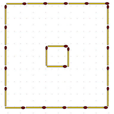 3) спички нельзя размещать, на краю большого квадрата, то есть по внешним сторонам.