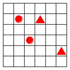 2-123. Сторона каждого маленького квадрата на рисунке, имеет длину в одну спичку. Требуется разместить ровно 26 спичек вдоль линий таким образом, чтобы они разделили весь чертёж на две части одинаковых размеров и формы, причем в одной из них должны находиться два нарисованных треугольника, а в другой – два круга.