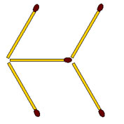 2-129. Из 5 спичек сложена маленькая стрела. Переложите 3 спички так, чтобы стрела поменяла направление на противоположное.