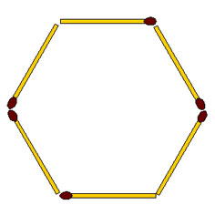 2-130. Из 6 спичек сложен правильный шестиугольник, у которого все углы тупые по 1200. Требуется переложить 4 спички так, чтобы получились треугольники с острыми углами.