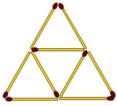 2-131. Как переложить 2 спички так, чтобы из трех треугольников получилось два треугольника.
