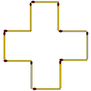 2-140. Из 12 спичек сложен крест, площадь которого равна 5 условным квадратам. Измените расположение спичек так, чтобы контур фигуры охватывал площадь равную только 4 условным квадратам.