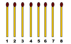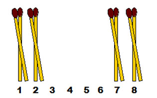 3-1. Разложите в ряд 8 спичек и, перекладывая одну спичку через две, составьте в четыре хода 4 группы по 2 спички в каждой.