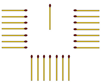 Задача состоит в том, чтобы расположить спички на листе выполняя три условия: