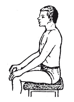 Поза лежа на животе, руки вдоль тела, ноги выпрямлены в коленных суставах, стопы обеих ног свисают за пределами массажного стола, голова повернута лицом к массажисту (рис. 4).