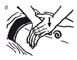 Рис. 15. Прием «пилы»: а – справа от позвоночника; б – слева от позвоночника