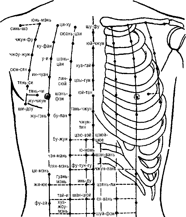 – регионарные точки, которые проецируются на поверхности тела отдельных органов или частей. Это, например, локтевой сустав (ЧИ-ЦЗЕ, ЦЮЙ-ЧИ, ШАО-ХАЙ, СЯО-ХАЙ), плечевой сустав (ЦЗЯНЬ-ЮЙ, НАО-ШУ, ЦЗЯНЬ-ЧЖЕНЬ), тазобедренный (ХУАНЬ-ТЯО, СИН-ЦЗЯНЬ, ЧЭН-ФУ, БИ-ГУАНЬ);