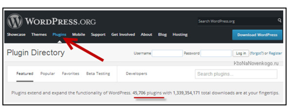 Совет! Ещё удобнее краткое описание на русском языке и ссылки на 500 лучших плагинов, разделённых тематически, можно найти на http://info-effect.ru/plaginy-wordpress.html и в нашем Приложении.