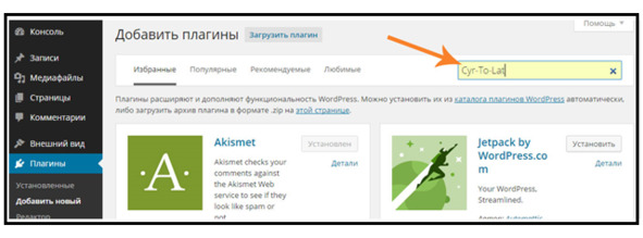 Поэтому одним из первых плагинов необходимо установить плагин Cyr-To-Lat, который будет преобразовывать кириллицу в адресе ссылок в латиницу.