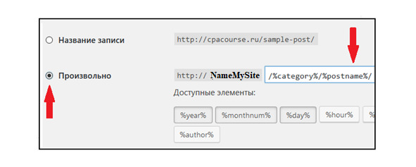 Это означает, что WordPress будет формировать ссылку на рубрику и на статью внутри рубрики.