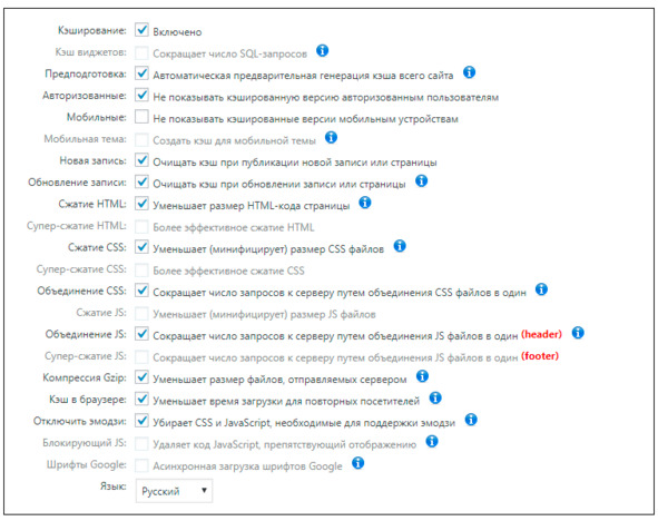 3. Авторизованные – показывает не кэшированную версию авторизованным пользователям. Рекомендую поставить галочку, для того чтобы видеть изменения сразу после их применения.