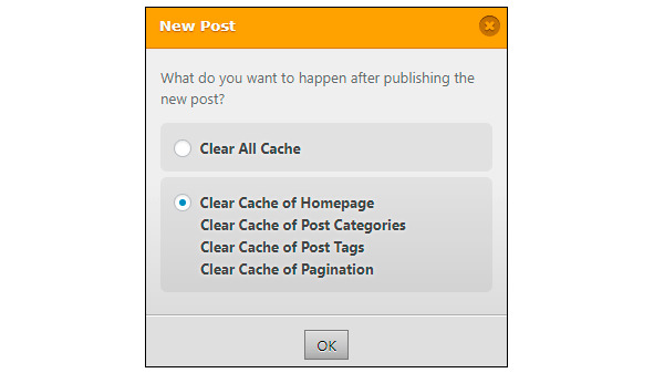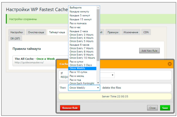 – Все файлы кэша удаляются, когда пост или страница публикуется
