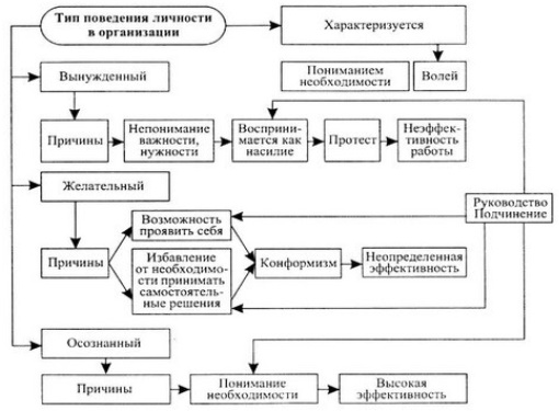 Схема 16. Типы поведения личности в организации
