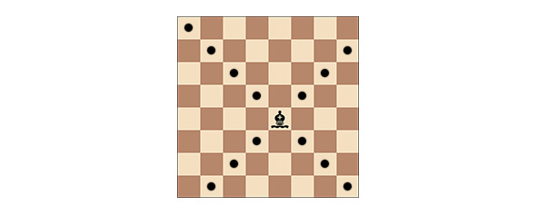 – Слон может пойти на любое поле по диагонали, на которой он стоит.