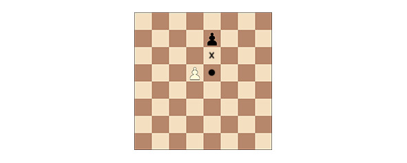 3.7.1. Пешка может пойти вперёд на поле, расположенное непосредственно перед ней на той же самой вертикали, при условии, что это поле не занято; или
