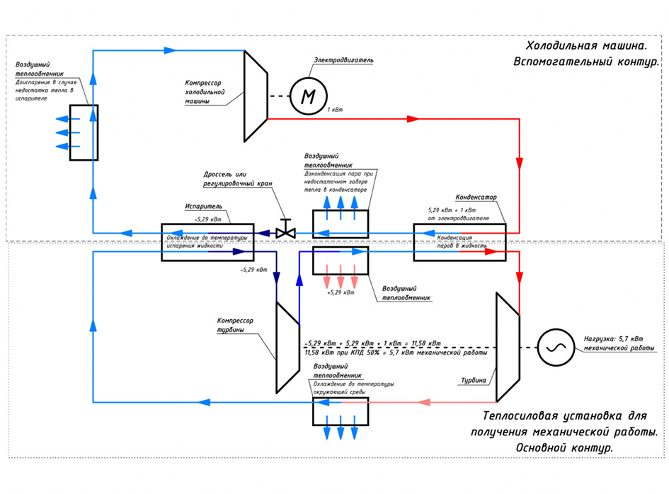 Сейчас я разрабатываю вечный двигатель, работающий на фреоне. Такой двигатель использует скрытую энергию фазового перехода вещества из газообразного в жидкое, и из жидкого в газообразное. Всем известно, что при ядерной реакции выделяется огромное количество энергии. Считаю, что и при переходе вещества из одного агрегатного состояния в другое на молекулярном уровне тоже происходит выделение дополнительной энергии. В соответствии с сегодняшними определениями это и есть вечный двигатель, потому что после запуска он будет работать, используя постоянный, неисчерпаемый источник тепла (тепло окружающего воздуха или океана), который в моей установке используется как для нагрева, так и для охлаждения фреона. Температура окружающей среды, нагреваемой солнечной энергией, без которой никакие физические процессы на Земле просто не могли бы происходить, играет здесь важную роль.