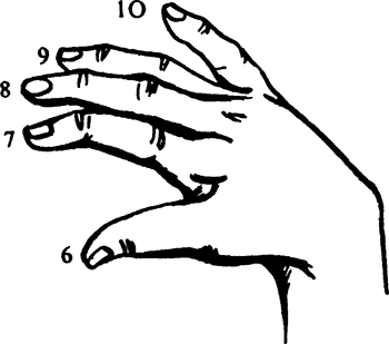 Палец № 9 – безымянный палец. Палец № 10 – мизинец.