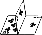 Для подмены карты во время игры не всегда требуется другая карта, иногда можно обойтись одной и той же, но специально подготовленной для этой цели. Для изготовления такой карты требуются три карты. Две карты – для подмены одной на другую, а третьей картой может быть любая, она нужна в качестве подложки, нижней основы. Например, десятка и двойка будут заменять одна другую, а третья карта, любая, служить подложкой, рис. 56. Сгибают десятку пополам, двойку тоже пополам, накладывают их на любую карту, на лицевую её сторону, и все три карты склеивают. Получилась как бы книга с одной страницей. Перелистав страницу влево, получим двойку. Перелистав страницу вправо, получим десятку (рис. 56).