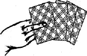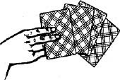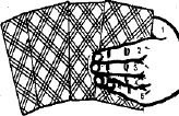 Для показа информации о масти один из пальцев левой руки согласно таблице 4 чуть-чуть отходит в сторону от крапа, то есть оттопыривается, а остальные пальцы чуть-чуть отходит в сторону от крапа, то есть оттопыривается, а остальные пальцы левой руки должны спокойно лежать на крапе. Оттопыренный палец может шевелиться или слегка сгибаться и разгибаться, или спокойно лежать на карте, это зависит от того, как шулер со своим помощником условятся. Например, на рис. 57 показаны пики, а на рис. 58 пальцы изображают червы.