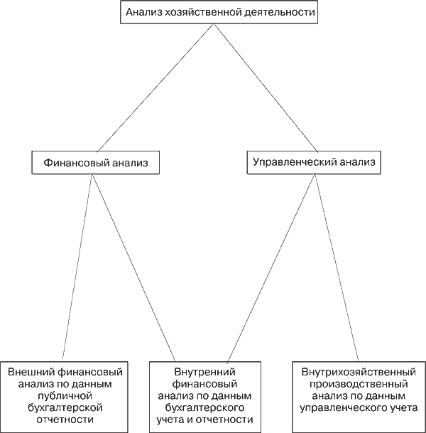 Классификация анализа на финансовый и управленческий вызвана существующим на практике разделением на бухгалтерский (финансовый) и управленческий учет.